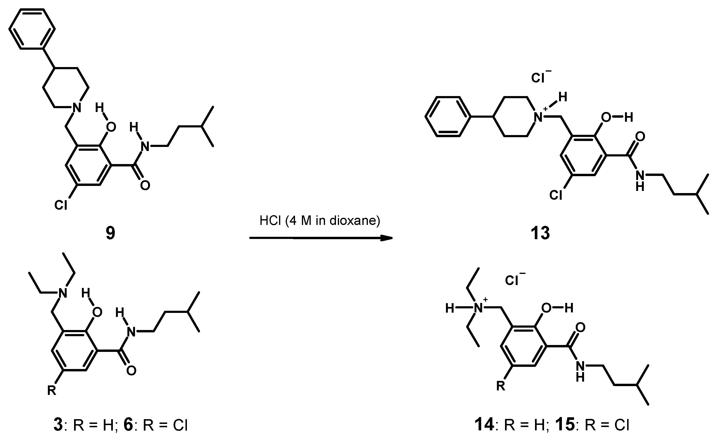 2.2.1. 5-Chloro-2-hydroxy-N-(3-methyl-butyl)-3-(4-phenyl-piperidin-1-ylmethyl)-benzamide (9)
