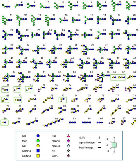 - Hirabayashi, J. Lectin-based structural glycomics: Glycoproteomics and glycan profiling. Glycoconj. J. 2004, 21, 35–40. [Google Scholar] [CrossRef]