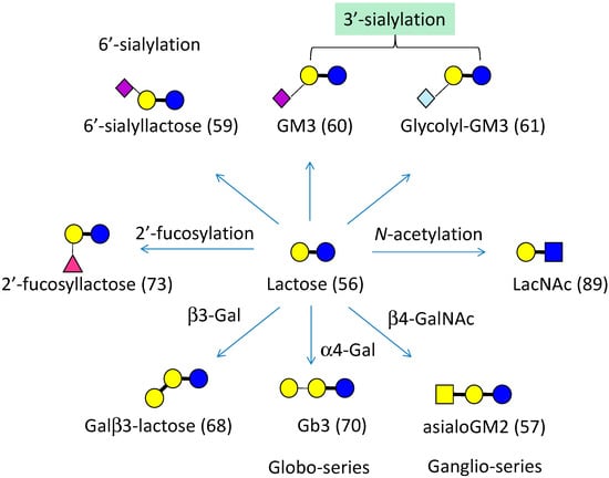 - Ikehara, Y.; Sato, T.; Niwa, T.; Nakamura, S.; Gotoh, M.; Ikehara, S.K.; Kiyohara, K.; Aoki, C.; Iwai, T.; Nakanishi, H.; et al. Apical Golgi localization of N,N'-diacetyllactosediamine synthase, beta4GalNAc-T3, is responsible for LacdiNAc expression on gastric mucosa. Glycobiology 2006, 16, 777–785. [Google Scholar]