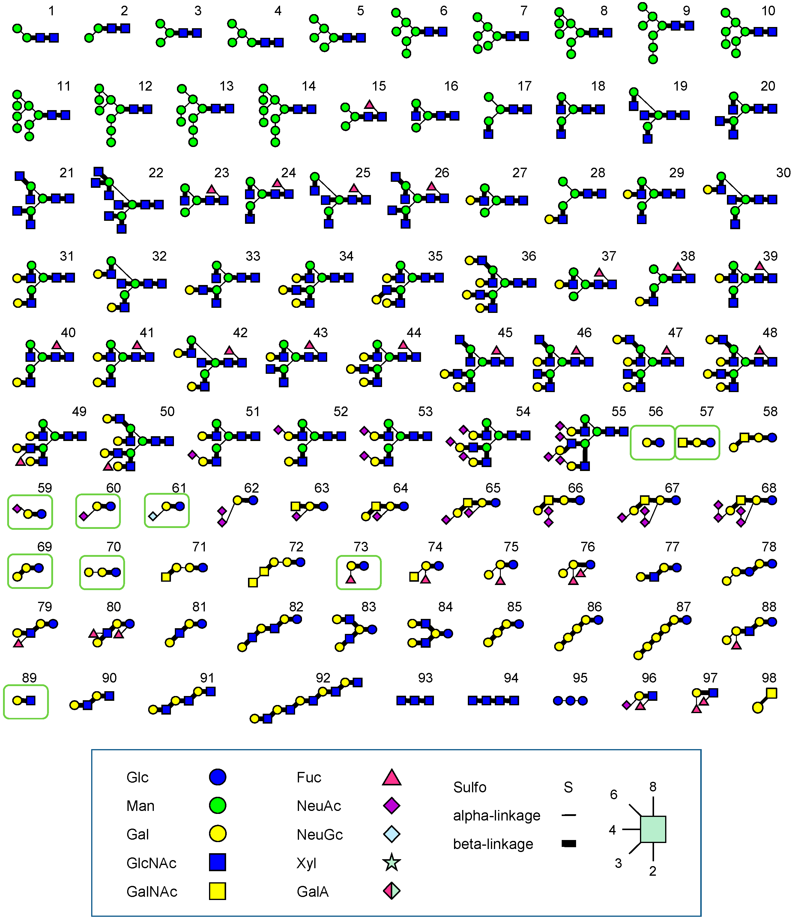 | GlcNAc (3) | None | |||
