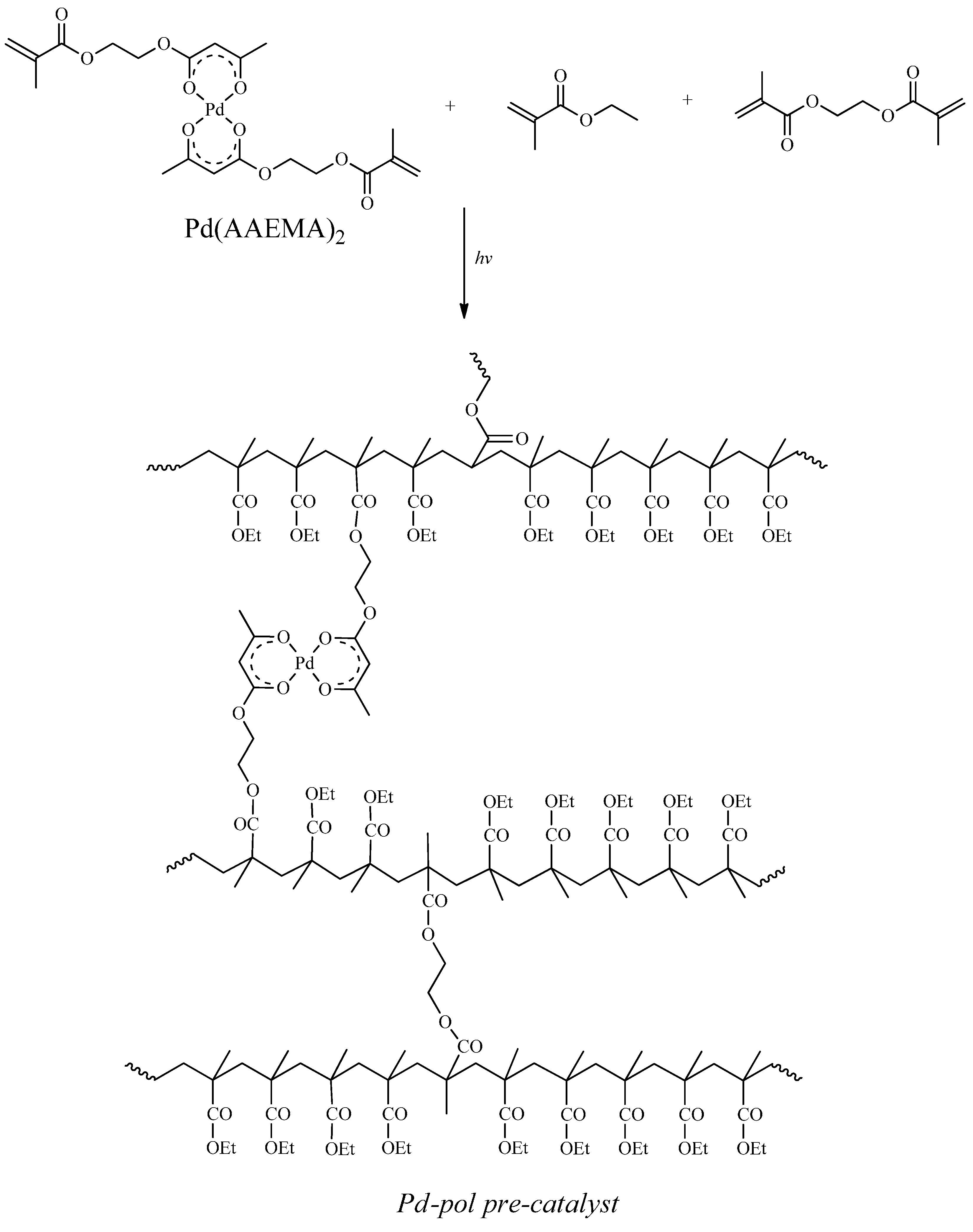 Numerous investigations concerning incorporation techniques of metal nanoparticles into the polymer matrix have been published, demonstrating the stabilization of the metal nanoparticles encapsulated in the polymer matrix [58,66,67,68]. The approach used for the preparation of Pd-pol [26], starting from a polymerizable Pd(II) β-ketoesterate complex [29], is particularly interesting in catalysis applications due to the attainment of an intimate contact of the components of the composite material.