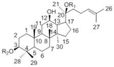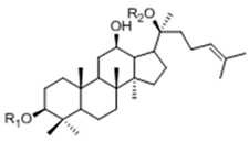 ![]() | Ginsenoside | R1 (C-3) | R2 (C-6) | R3 (C-20) |