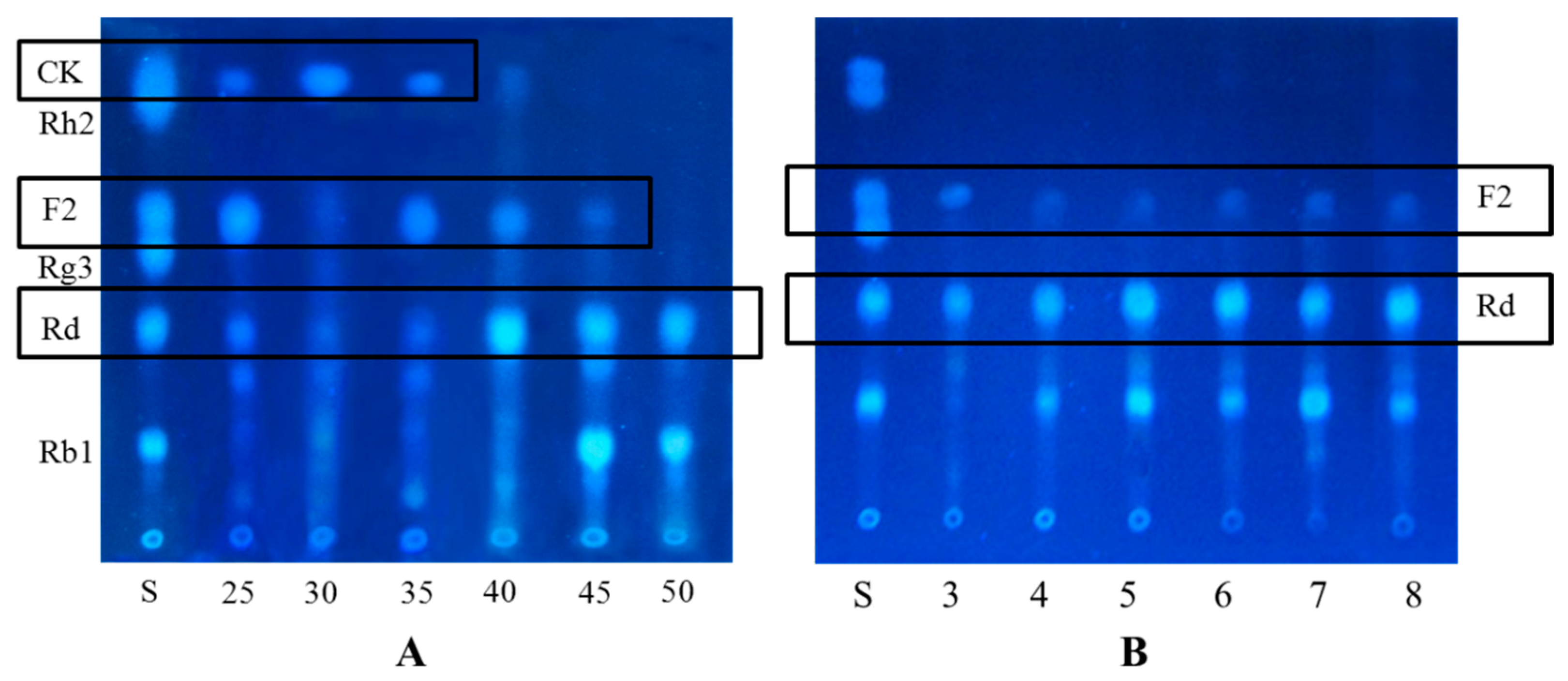 3.9. Parameters Optimization for the Biotransformation of Ginsenoside Rb1