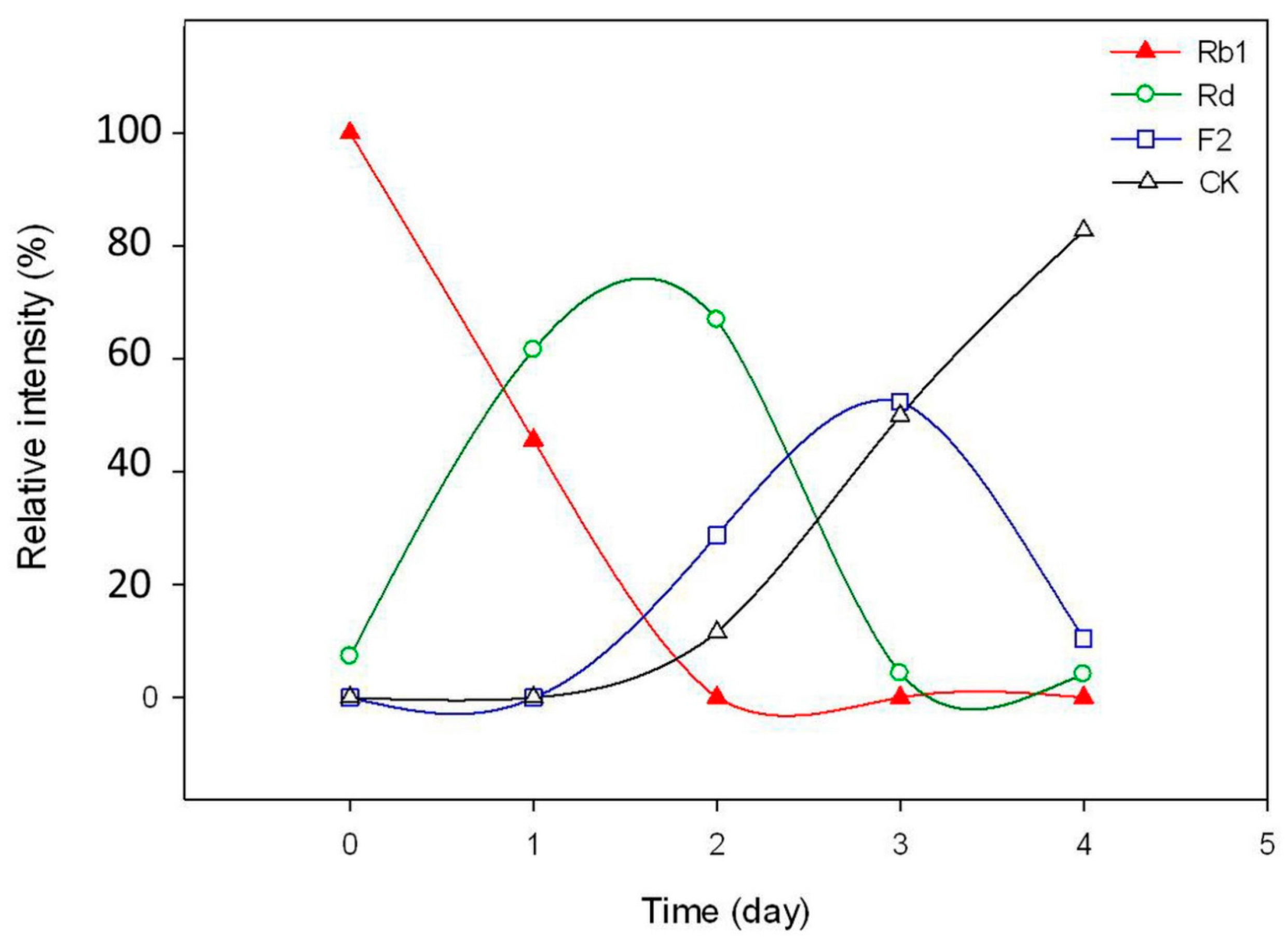 2.3. Calculation on Molar Conversion Rate of Rb1 and Purity of CK