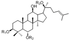 ![]() | Ginsenoside | R1 (C-3) | R2 (C-6) | R3 (C-20) |