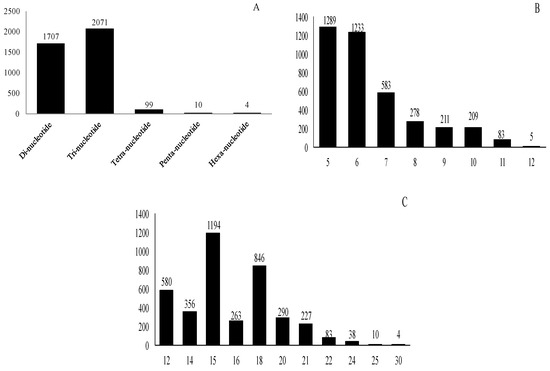 - Tóth, G.; Gáspári, Z.; Jurka, J. Microsatellites in different eukaryotic genomes: Survey and analysis. Genome Res. 2000, 10, 967–981. [Google Scholar] [CrossRef] [PubMed]