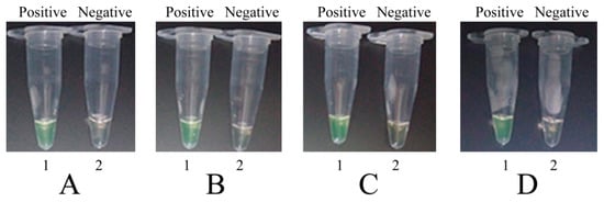 - Tang, M.J.; Zhou, S.; Zhang, X.Y.; Pu, J.H.; Ge, Q.L.; Tang, X.J.; Gao, Y.S. Rapid and sensitive detection of listeria monocytogenes by loop-mediated isothermal amplification. Curr. Microbiol. 2011, 63, 511–516. [Google Scholar] [CrossRef] [PubMed]