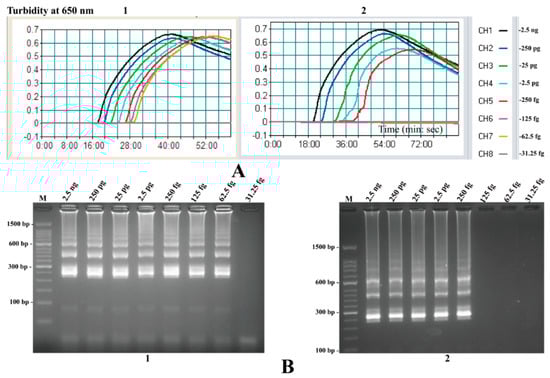 - Niessen, L. Current state and future perspectives of loop-mediated isothermal amplification (LAMP)-based diagnosis of filamentous fungi and yeasts. Appl. Microbiol. Biotechnol. 2015, 99, 553–574. [Google Scholar] [CrossRef] [PubMed]