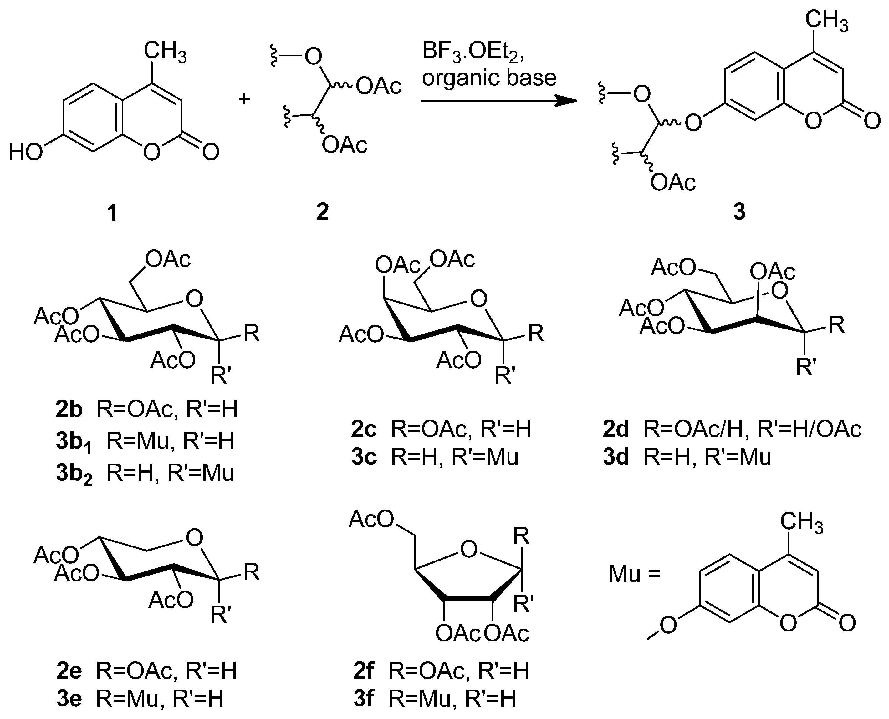 Wei X, Ma Y, Wu Q, Zhang J, Cai Z, Lu M. An Improved Helferich Method for the α/β-Stereoselective Synthesis of 4-Methylumbelliferyl Glycosides for the Detection of Microorganisms. Molecules. 2015; 20(12):21681-21699. https://doi.org/10.3390/molecules201219789