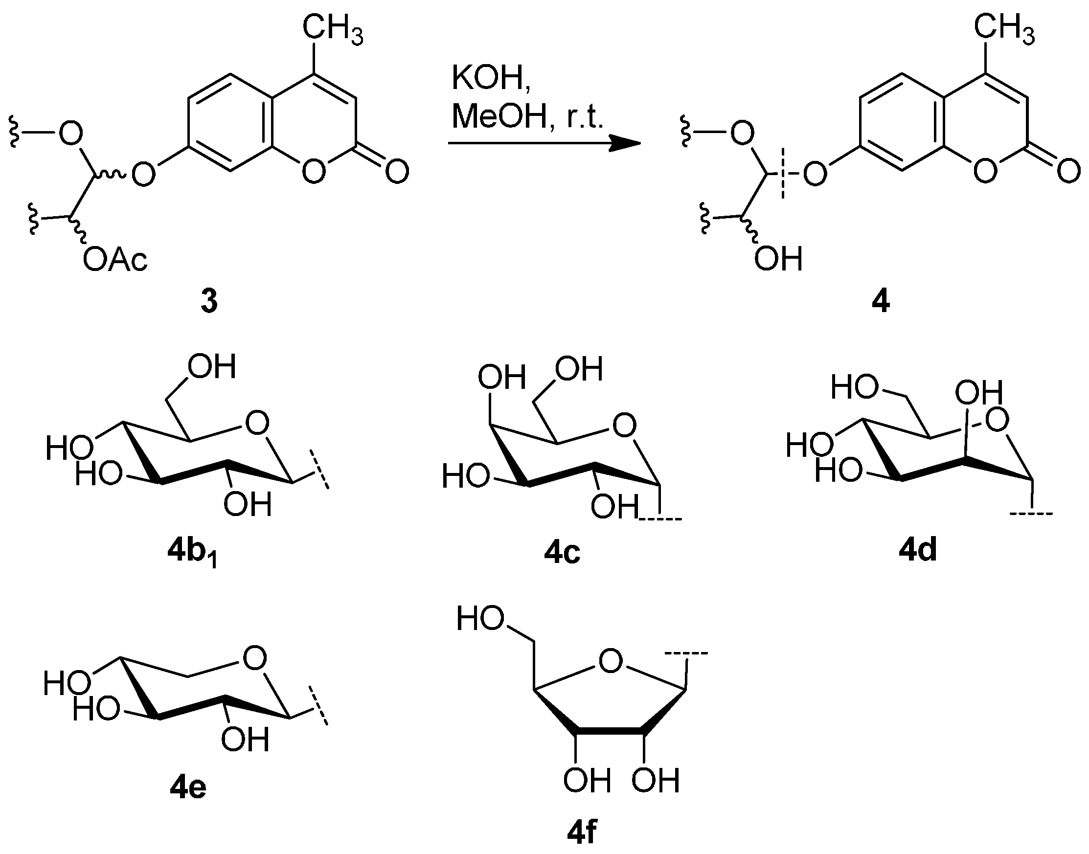2.3. Deprotection of the Protected Glycosides 3a–3f