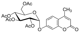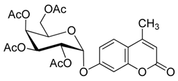 Although many such kinds of fluorogenic glycosidase substrates are commercially available, their syntheses are not necessarily straightforward or highly efficient. According to the literature, they are mainly produced by O-glycosylation followed by O-deacetylation. The methods of O-glycosylation primarily include: (1) Michael-type glycosylation with acetylated glycosyl halides [19,20,21,22,23,24,25,26,27]; (2) Helferich glycosylation with glycosyl acetates via a fusion procedure, in boiling xylene in the presence of zinc chloride, or using a stannic chloride catalyst, as in the O-trimethylsilylation of 4-MU [27,28]; (3) Koenigs-Knorr glycosylation with glycosyl halides [18,29,30,31]. As well as the methods mentioned above, 4-methylumbelliferyl glucuronides can be produced via direct oxidation of the primary hydroxyl group of 4-methylumbelliferyl glucopyranoside [27,32], indirect oxidation of the primary hydroxyl group of 4-methylumbelliferyl-2,3,4-tri-O-acetyl-glucopyranoside followed by deprotection [33], and Schmidt glycosylation with trichloroacetimidate [34,35]. However, these methods suffer from drawbacks that limit their wider or practical application. For example, Michael-type glycosylations in acetone/water often afford low yields [20,21,22,23]; and although relatively higher yields can be obtained under biphasic conditions, as shown in our previous study on the synthesis of 4-methylumbelliferyl β-d-galactopyranoside [24], it is incompatible with glycosyl halides which easily transform into glycals by hydrogen halide elimination under basic conditions, e.g., acetobromomethylglucuronate [26,36]. Silver compounds used as catalysts in Koenigs-Knorr glycosylation are relatively expensive. Compared with other methods especially oxidation and Schmidt glycosylation, glycosyl acetates as glycosyl donors or precursors in the Helferich procedure are more easily available. Therefore, an improved Helferich procedure comprising other advantages, such as stereoselectivity, relatively high yield and easy operation, would be extremely pertinent.