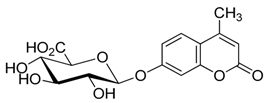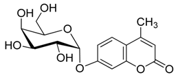 - Marsh, C.A.; Levvy, G.A. Synthesis of 4-methylumbelliferone β-d-glucuronide, a substrate for the fluorimetric assay of β-glucuronidase. Nature 1956, 178, 589–590. [Google Scholar] [CrossRef]