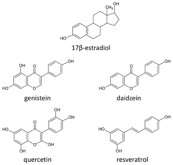 Chemical structure of 17β-estradiol and phytoestrogens [134,138].