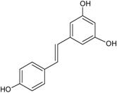 | Stilbenes C6–C2–C6 | ![]() | Resveratrol | Red wine, peanuts (Arachis hypogaea), red cabbage (Brassica olearaceae Capitata Group), spinach (Spinacia oleracea) |