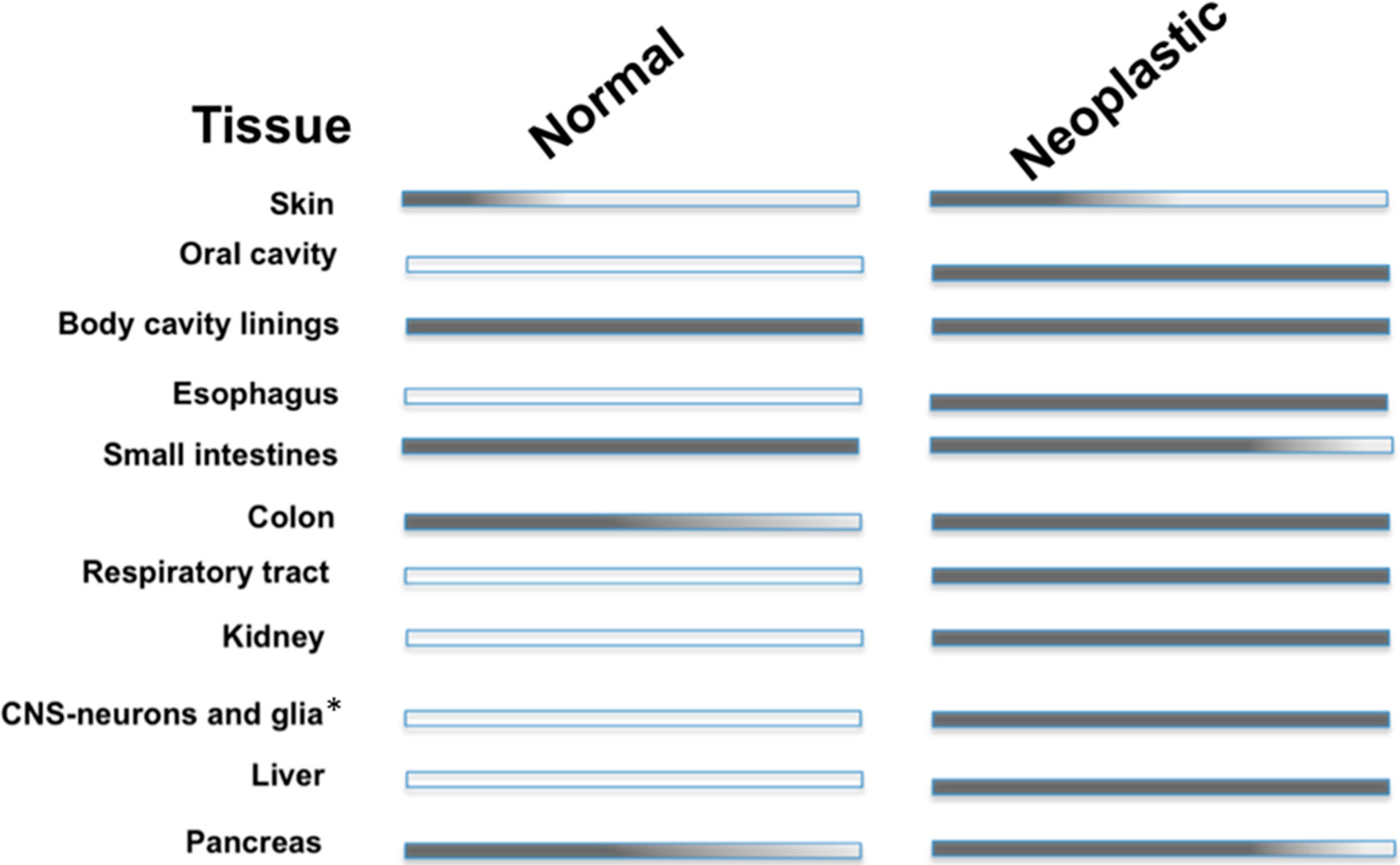 CA IX expression in adult human tissue. Note that (*) indicates high-grade tumor tissues.