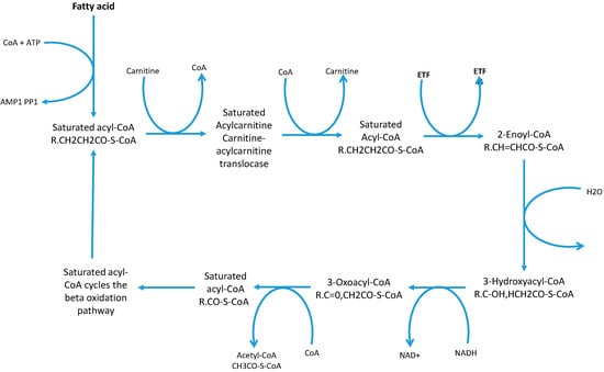 - Eaton, S.; Bartlett, K.; Pourfarzam, M. Mammalian mitochondrial beta-oxidation. Biochem. J. 1996. Available online: http://www.biochemj.org/bj/320/bj3200345.htm (accessed on 29 January 2014).