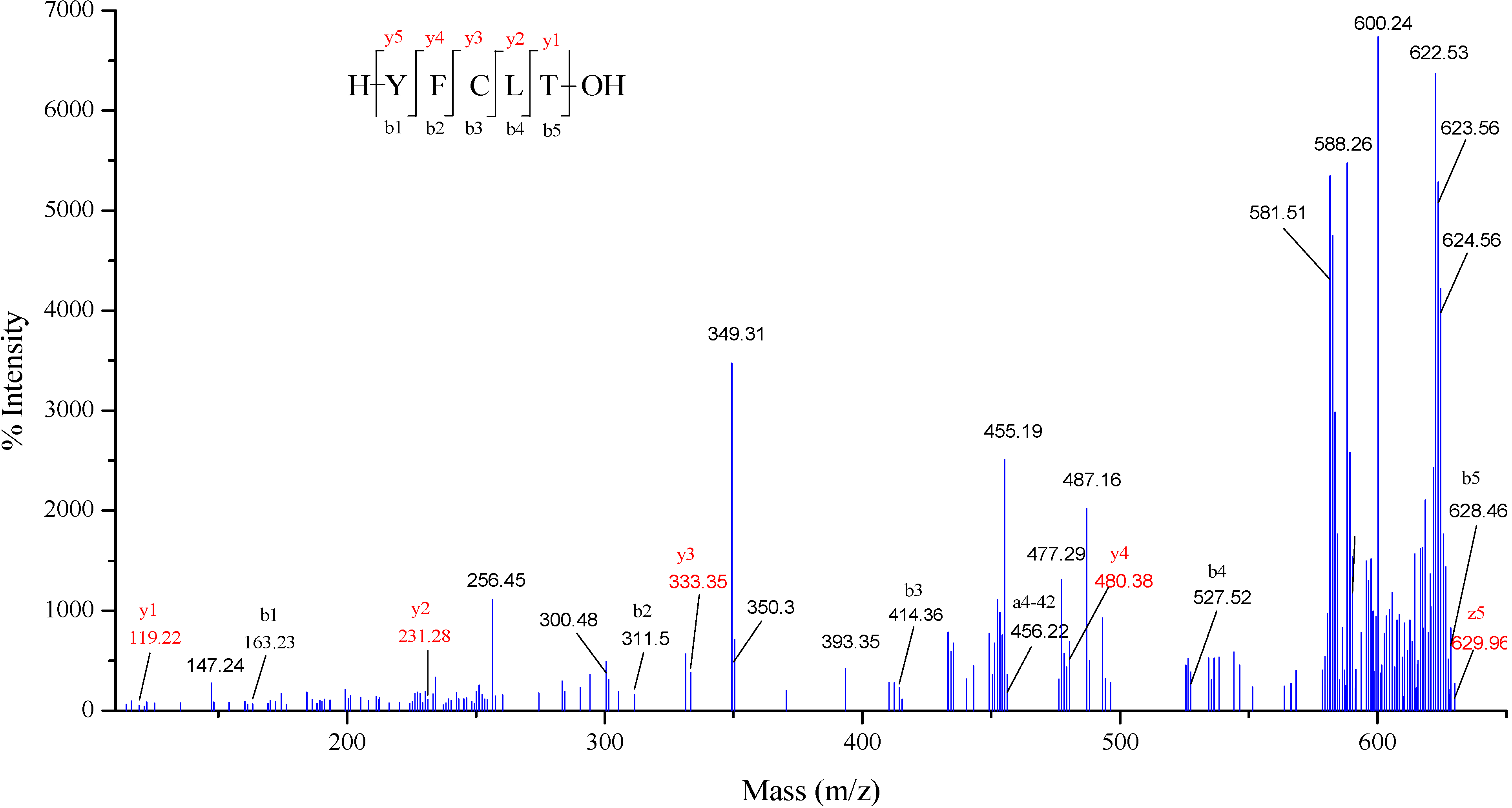 3.7. Identification of Antioxidant Peptide by MALDI-TOF/TOF MS/MS