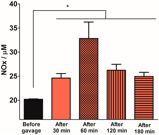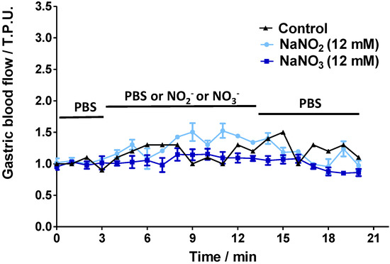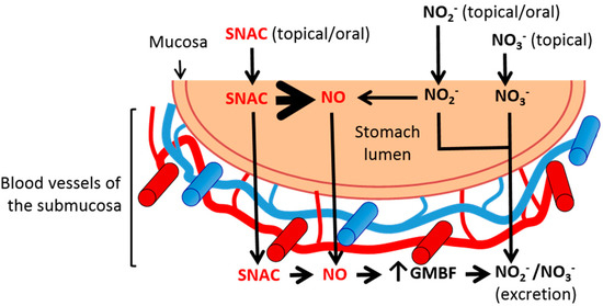 - Petersson, J.; Phillipson, M.; Jansson, E.A.; Patzak, A.; Lundberg, J.O.; Holm, L. Dietary nitrate increases gastric mucosal blood flow and mucosal defense. Am. J. Physiol. Gastrointest. Liver Physiol. 2007, 292, G718–G724. [Google Scholar] [CrossRef] [PubMed]