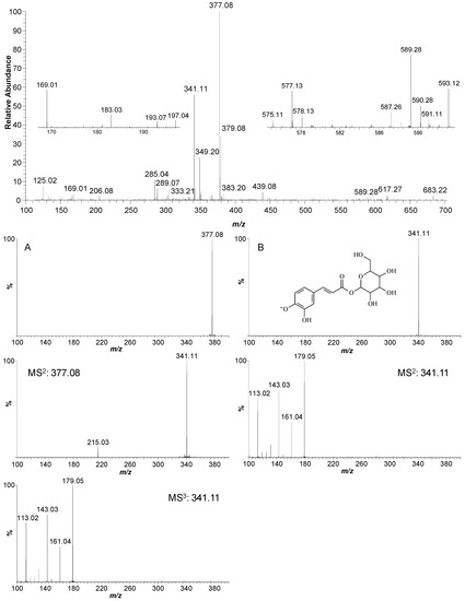 2.1.3. Identification of Phenolic Compounds in M. caesalpiniifolia by ESI(−)-LTQ-Orbitrap-MS