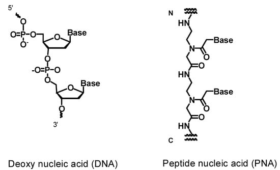 - Shakeel, S.; Karim, S.; Ali, A. Peptide nucleic acid (PNA)—A review. J. Chem. Technol. Biotechnol. 2006, 81, 892–899. [Google Scholar] [CrossRef]
