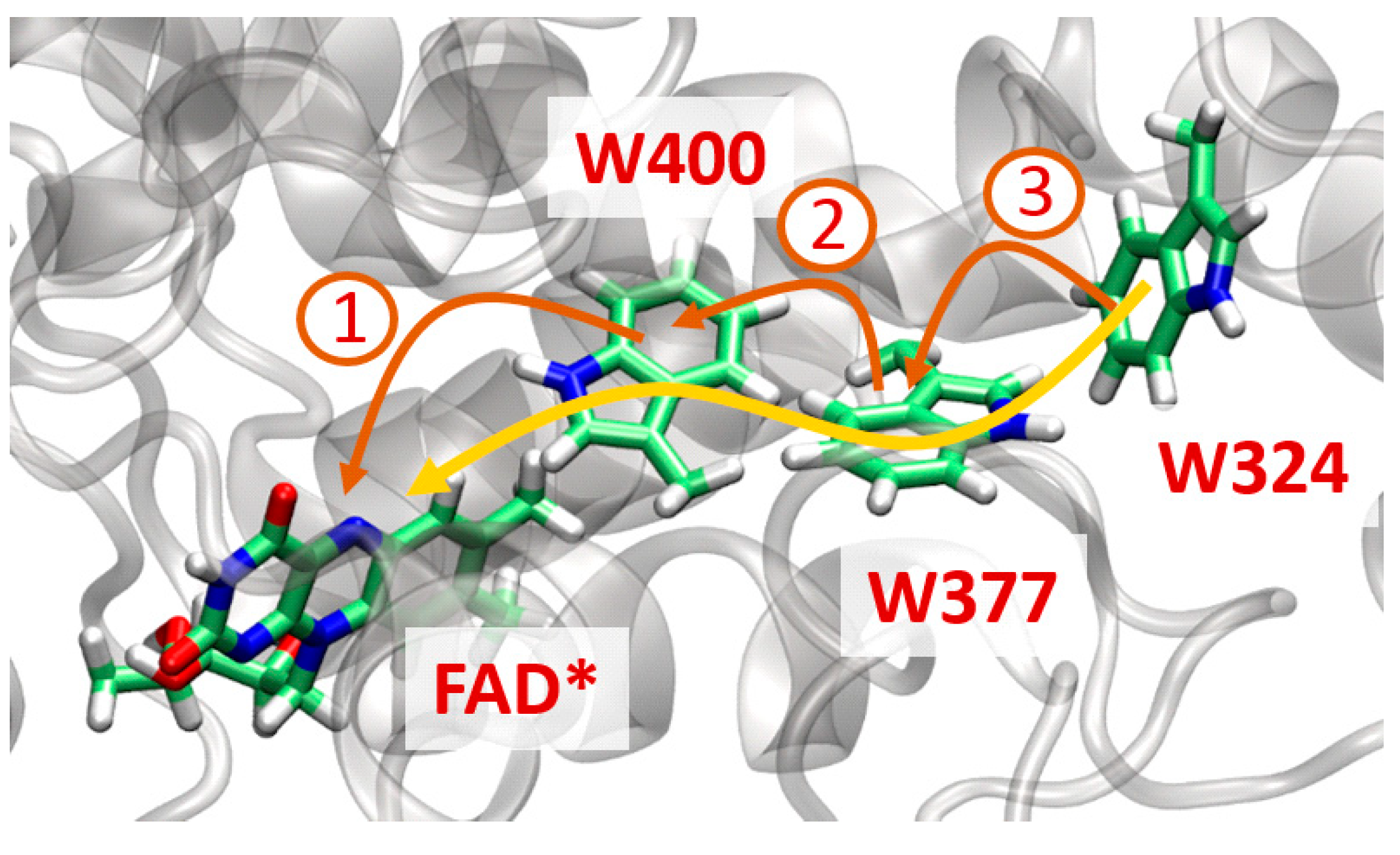 84. Cailliez, F.; Müller, P.; Gallois, M.; de la Lande, A. ATP binding and aspartate protonation enhance photoinduced electron transfer within plant cryptochromes. J. Am. Chem. Soc. 2014, 136, 12974–12986. [Google Scholar] [CrossRef] [PubMed]