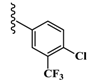 ((3RS,5RS)-5-(1-(4-Chloro-3-(trifluoromethyl)phenyl)-1H-1,2,3-triazol-4-yl)-2-methyl isoxazolidin-3-yl)methanol (16d): Compound 16d was prepared by the general desilylation procedure in 46.5% yield as yellow solid, mp = 94–96 °C. 1H-NMR (CDCl3): δ = 8.07 (s, 1H), 8.06 (d, J = 2.6 Hz, 1H), 7.86 (dd, J = 8.7, 2.6 Hz, 1H), 7.65 (d, J = 8.7 Hz, 1H), 5.49 (dd, J=8.7, 6.3 Hz, 1H), 3.58 (d, J = 5.7 Hz, 2H), 3.26–3.18 (m, 1H), 2.94 (dt, J = 12.8, 8.7, 1H), 2.79 (s, 3H), 2.35 (ddd, J = 12.8, 6.3, 4.9, 1H). 13C-NMR (CDCl3): δ = 149.50, 135.51, 133.11, 132.57, 130.06 (q, J = 32.4 Hz), 124.38, 123.24, 121.07, 119.73, 119.64 (q, J = 5.5 Hz), 70.94, 69.55, 63.25, 44.92, 36.78, 29.78; Anal. Calcd for C14H14ClF3N4O2: C, 46.36; H, 3.89; N, 15.45; found C, 46.41; H, 3.93; N, 15.48.