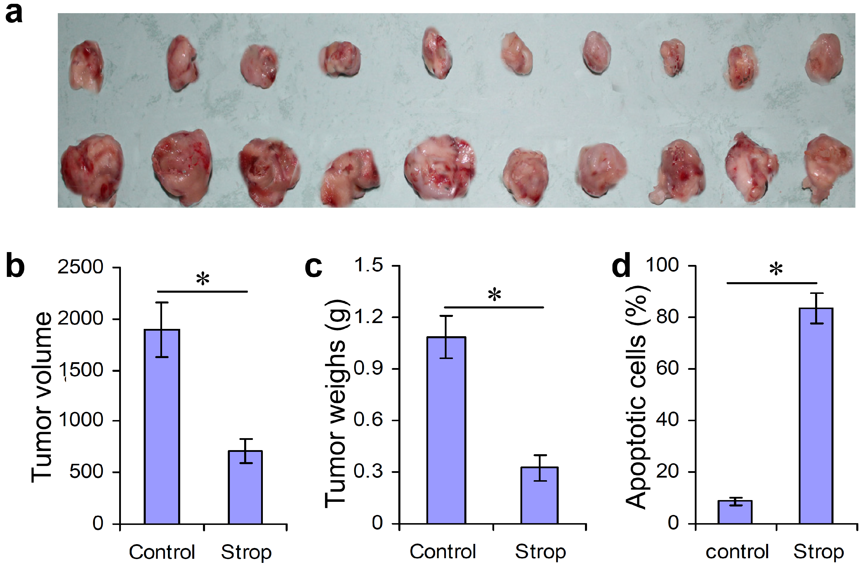 2.4. Strophalloside Inhibited Tumor Growth and Induced SGC-7901 Cell Apoptosis in Vivo