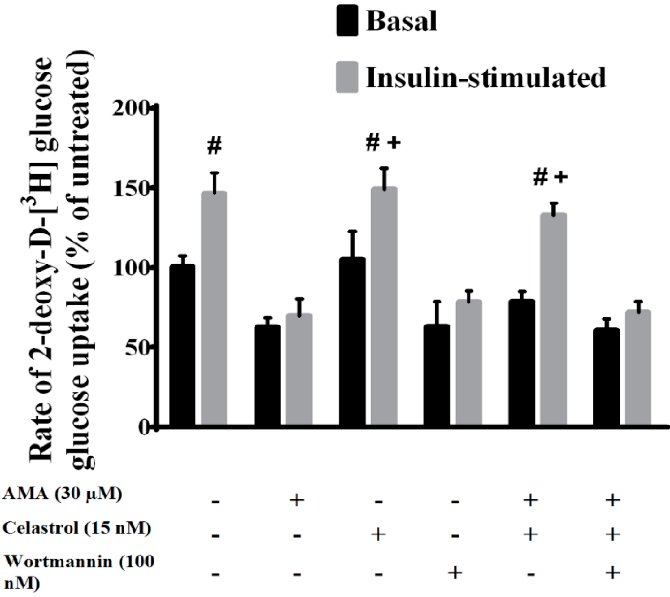 Abu Bakar, M.H.; Cheng, K.-K.; Sarmidi, M.R.; Yaakob, H.; Huri, H.Z. Celastrol Protects against Antimycin A-Induced Insulin Resistance in Human Skeletal Muscle Cells. Molecules 2015, 20, 8242-8269. https://doi.org/10.3390/molecules20058242