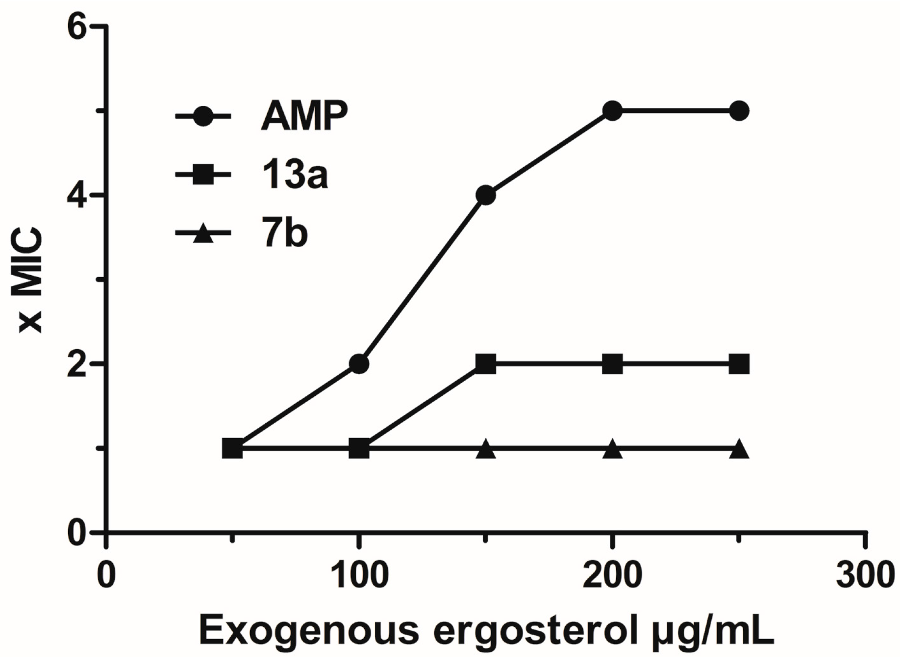 2.3.3. Evaluation of Action on Membrane Ergosterol: Ergosterol Effect Assay