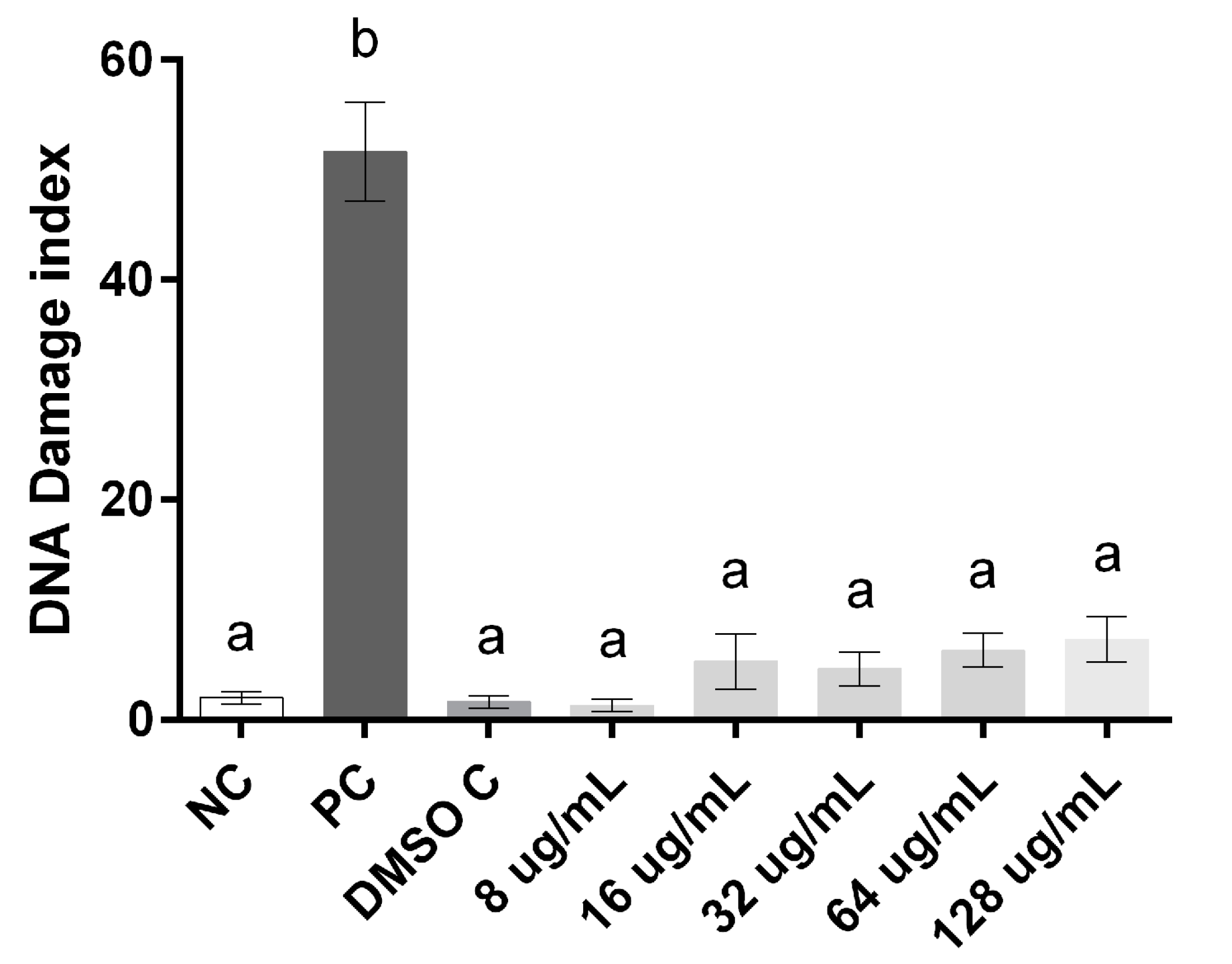 - Singh, N.P.; McCoy, M.T.; Tice, R.R.; Schneider, E.L. A simple technique for quantitation of low levels of DNA damage in individual cells. Exp. Cell Res. 1988, 175, 184–191. [Google Scholar] [CrossRef] [PubMed]