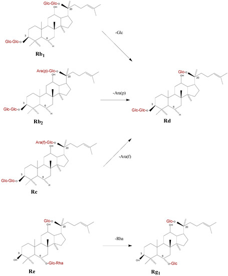 - Zhao, X.S.; Gao, J.; Song, C.C.; Fang, Q.; Wang, N.; Zhao, T.J.; Liu, D.B.; Zhou, Y.F. Fungal sensitivity to and enzymatic deglycosylation of ginsenosides. Phytochemistry 2012, 78, 65–71. [Google Scholar] [CrossRef] [PubMed]