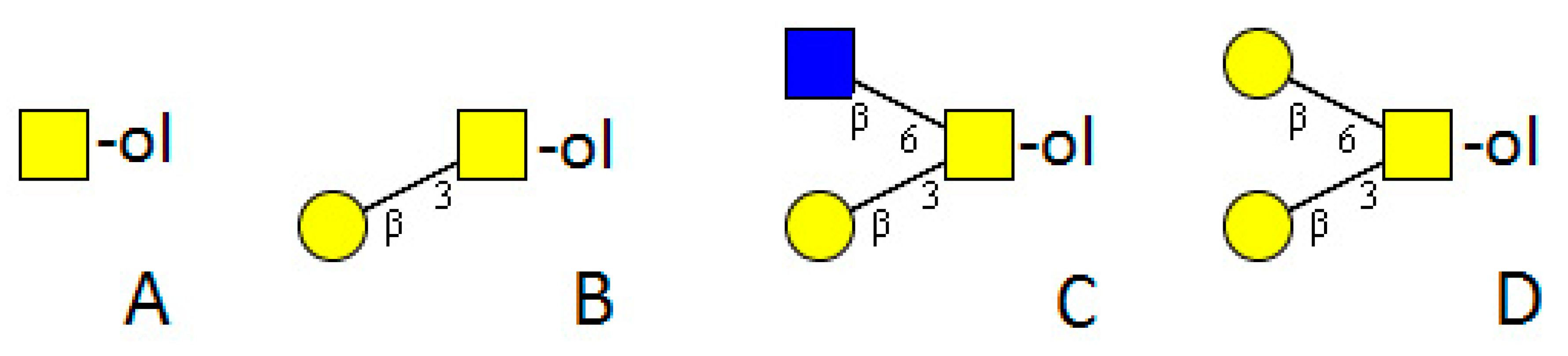 - Tran, D.T.; Ten Hagen, K.G. Mucin-type O-glycosylation during development. J. Biol. Chem. 2013, 288, 6921–6929. [Google Scholar] [CrossRef] [PubMed]