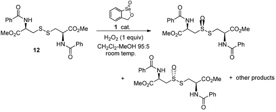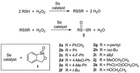 McNeil, N.M.R.; McDonnell, C.; Hambrook, M.; Back, T.G. Oxidation of Disulfides to Thiolsulfinates with Hydrogen Peroxide and a Cyclic Seleninate Ester Catalyst. Molecules 2015, 20, 10748-10762. https://doi.org/10.3390/molecules200610748