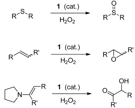 - Arterburn, J.B.; Perry, M.C.; Nelson, S.L.; Dible, B.R.; Holguin, M.S. Rhenium-catalyzed oxidation of thiols and disulfides with sulfoxides. J. Am. Chem. Soc. 1997, 119, 9309–9310. [Google Scholar] [CrossRef]