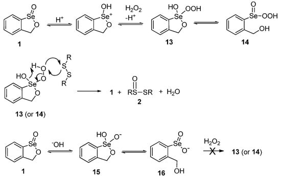 - Press, D.J.; McNeil, N.M.R.; Hambrook, M.; Back, T.G. Effects of methoxy substituents on the glutathione peroxidase-like activity of cyclic seleninate esters. J. Org. Chem. 2014, 79, 9394–9401. [Google Scholar] [CrossRef] [PubMed]