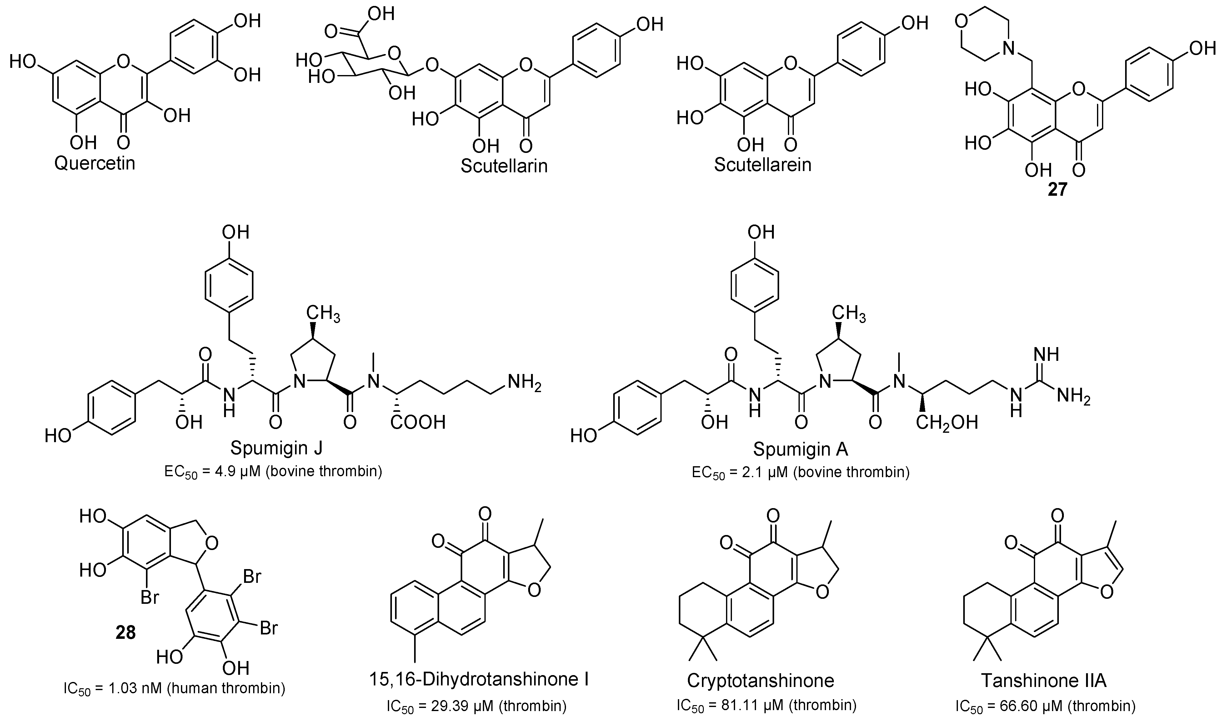 2.4. Natural Products with Thrombin Inhibitory Activity