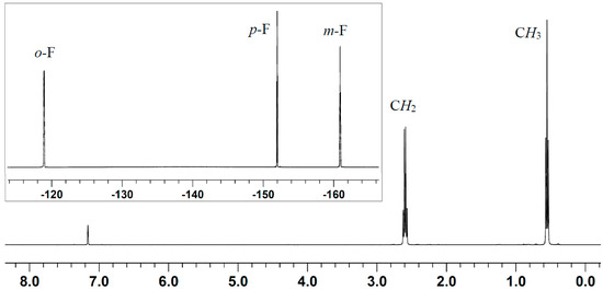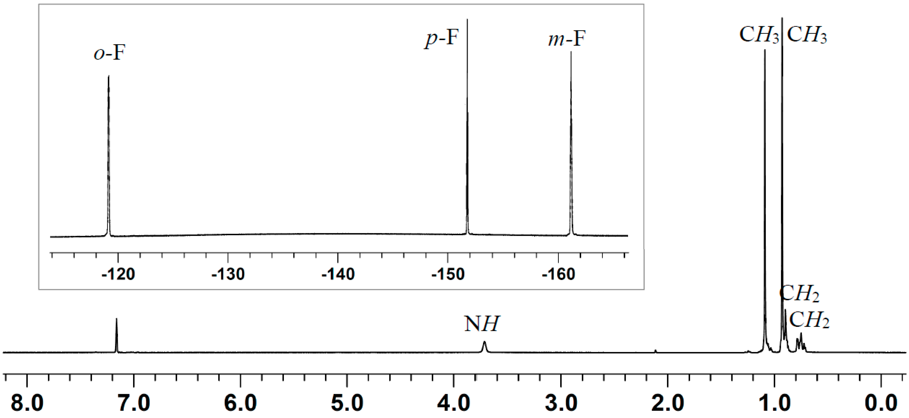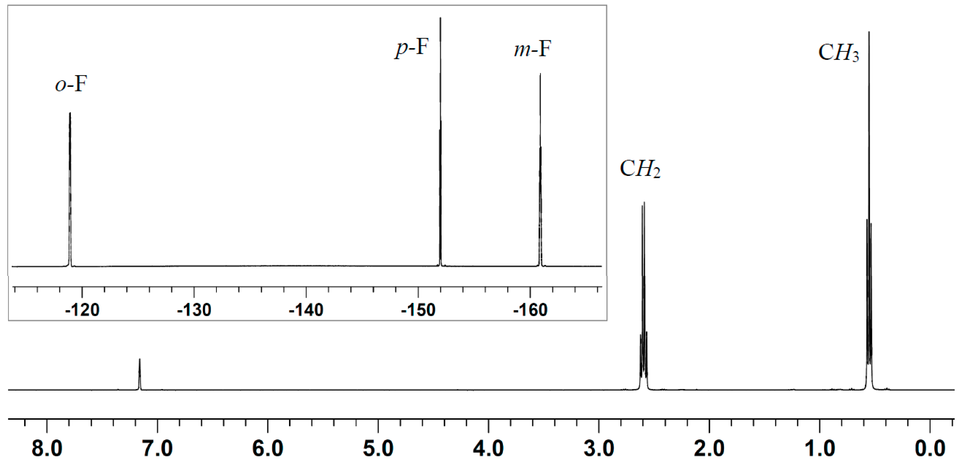 1H- and 19F- (inset) spectra (C6D6) of adduct Et3N·Al(C6F5)3.