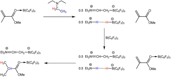 Stoichiometric hydrogenation of MMA to methyl isobutyrate by Et3N/B(C6F5)3.