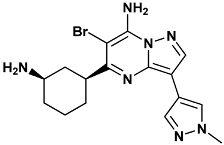 ![]() | 5-[(1R,3S)-3-azanylcyclohexyl]-6-bromo-3-(1-methylpyrazol-4-yl)pyrazolo[1,5-a]pyrimidin-7-amine | 22k-3OT3 |