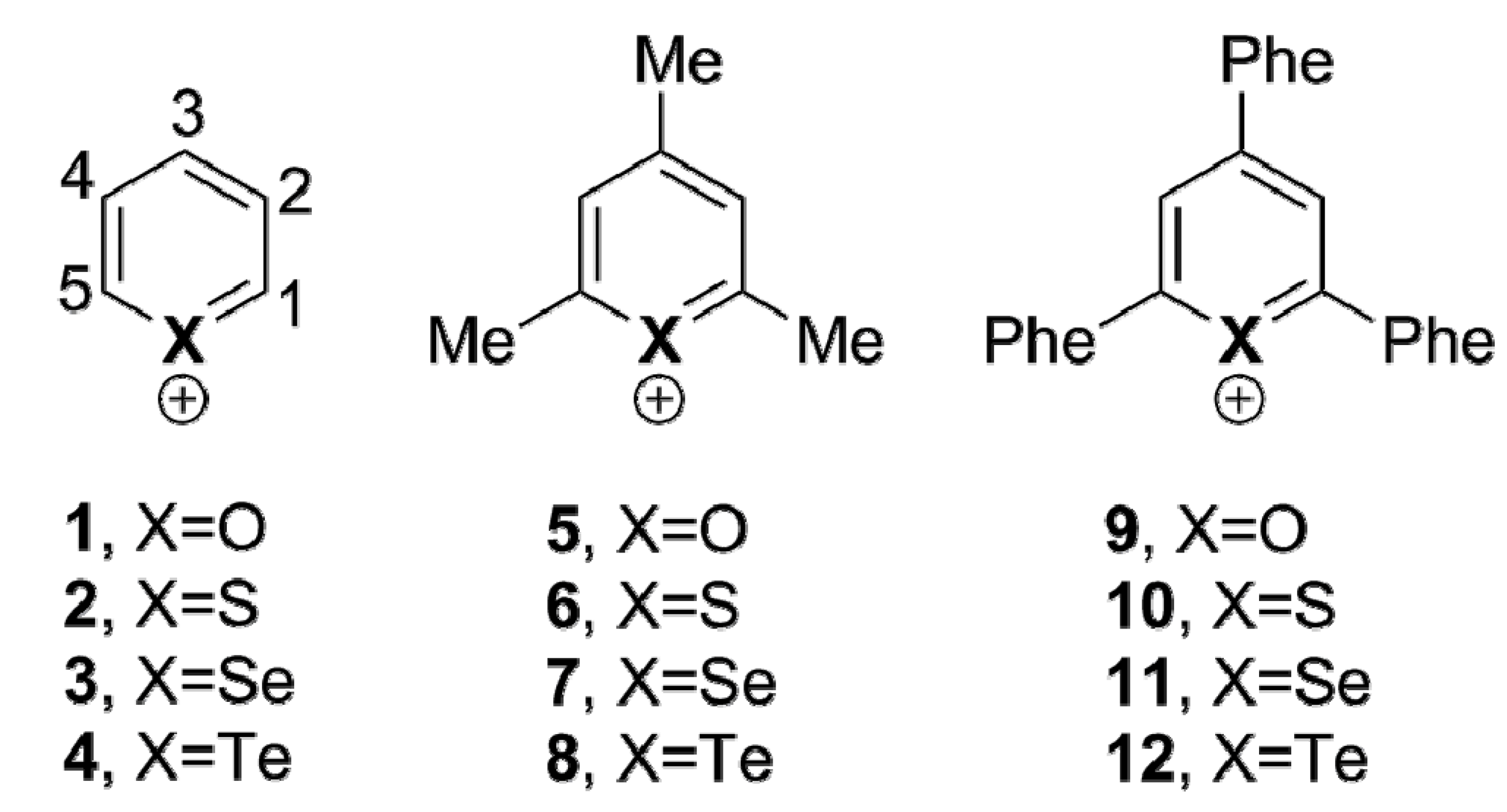 - Milov, A.A.; Starikov, A.G.; Gridin, M.K.; Minyaev, R.M. Effect of the Counterion on the Steric and Electronic Structure of Pyrylium Cation. Rus. J. Gen. Chem. 2007, 77, 1373–1385. [Google Scholar] [CrossRef]