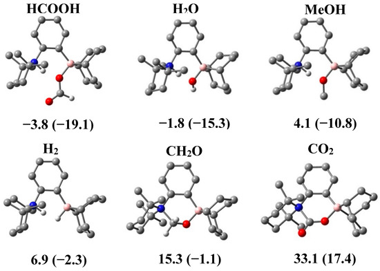 - Courtemanche, M.A.; Légaré, M.A.; Maron, L.; Fontaine, F.G. Reducing CO2 to methanol using frustrated Lewis pairs: On the mechanism of phosphine-borane-mediated hydroboration of CO2. J. Am. Chem. Soc. 2014, 136, 10708–10717. [Google Scholar] [CrossRef] [PubMed]