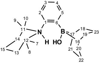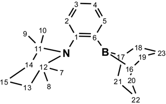 - Schwendemann, S.; Fröhlich, R.; Kehr, G.; Erker, G. Intramolecular frustrated N/B Lewis pairs by enamine hydroboration. Chem. Sci. 2011, 2, 1842–1849. [Google Scholar] [CrossRef]