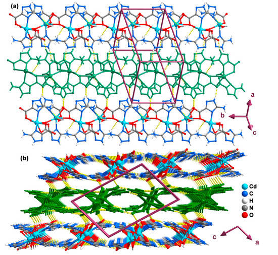 - Ding, B.; Yi, L.; Wang, Y.; Cheng, P.; Liao, D.Z.; Yan, S.P.; Jiang, Z.H.; Song, H.B.; Wang, H.G. Synthesis of a series of 4-pyridyl-1,2,4-triazole-containing cadmium(II) luminescent complexes. Dalton Trans. 2006, 665–675. [Google Scholar] [CrossRef] [PubMed]