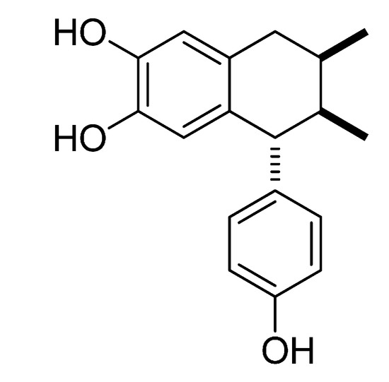 - Konno, C.; Xue, H.Z.; Lu, Z.Z.; Ma, B.X.; Erdelmeier, C.A.J.; Che, C.T.; Cordell, G.A.; Soejarto, D.D.; Waller, D.P.; Fong, H.H.S. 1-Aryl Tetralin Lignans from Larrea tridentata. J. Nat. Prod. 1989, 52, 1113–1117. [Google Scholar] [CrossRef]