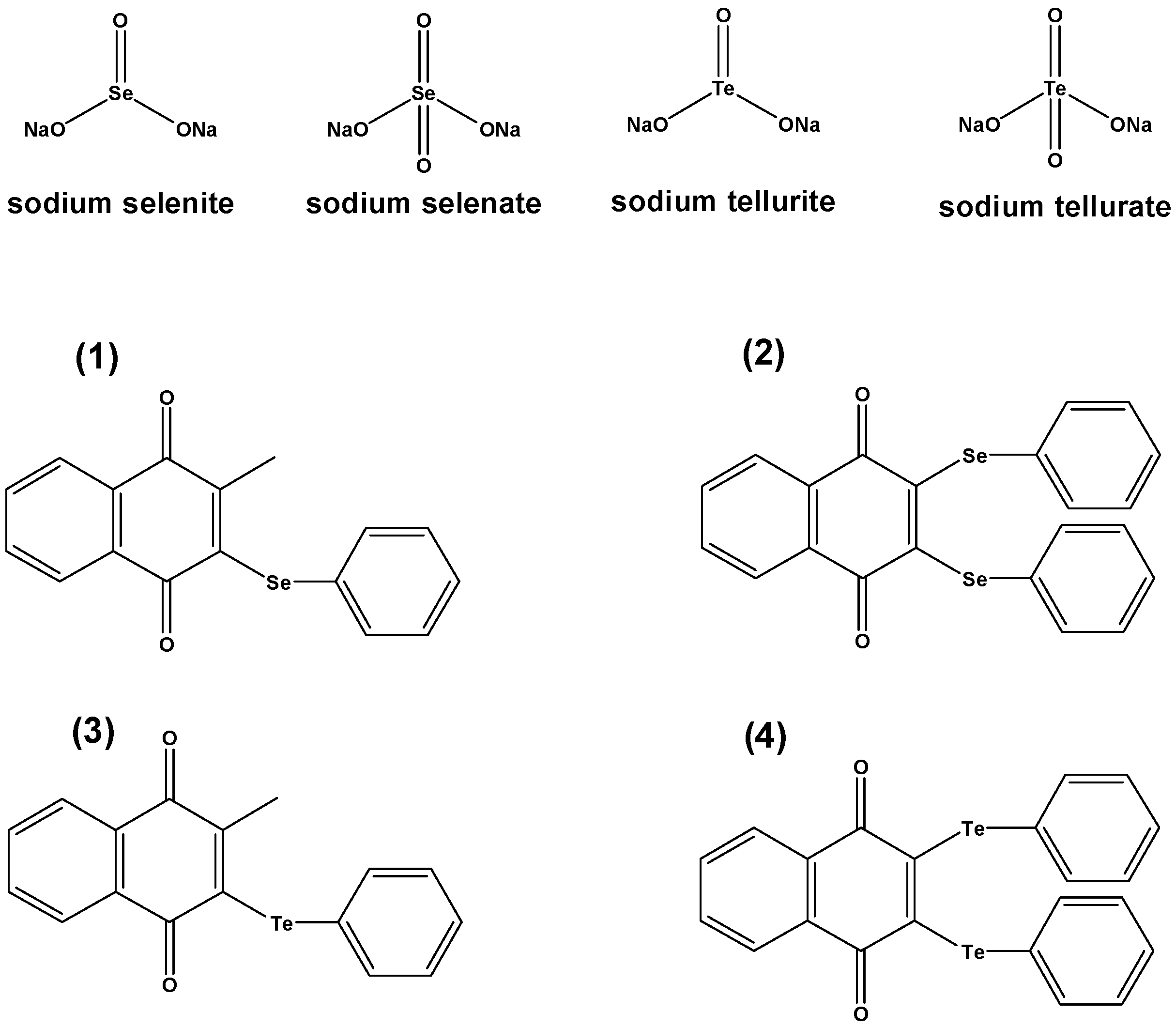 - Ba, L.A.; Doring, M.; Jamier, V.; Jacob, C. Tellurium: an element with great biological potency and potential. Org. Biomol. Chem. 2010, 8, 4203–4216. [Google Scholar] [CrossRef] [PubMed]