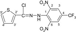 3.2.2. General Procedure for Synthesis of N′-[2,6-dinitro-4-(trifluoromethyl)phenyl]hydrazonoyl Chlorides 3b, 3c, 3d, 3e
