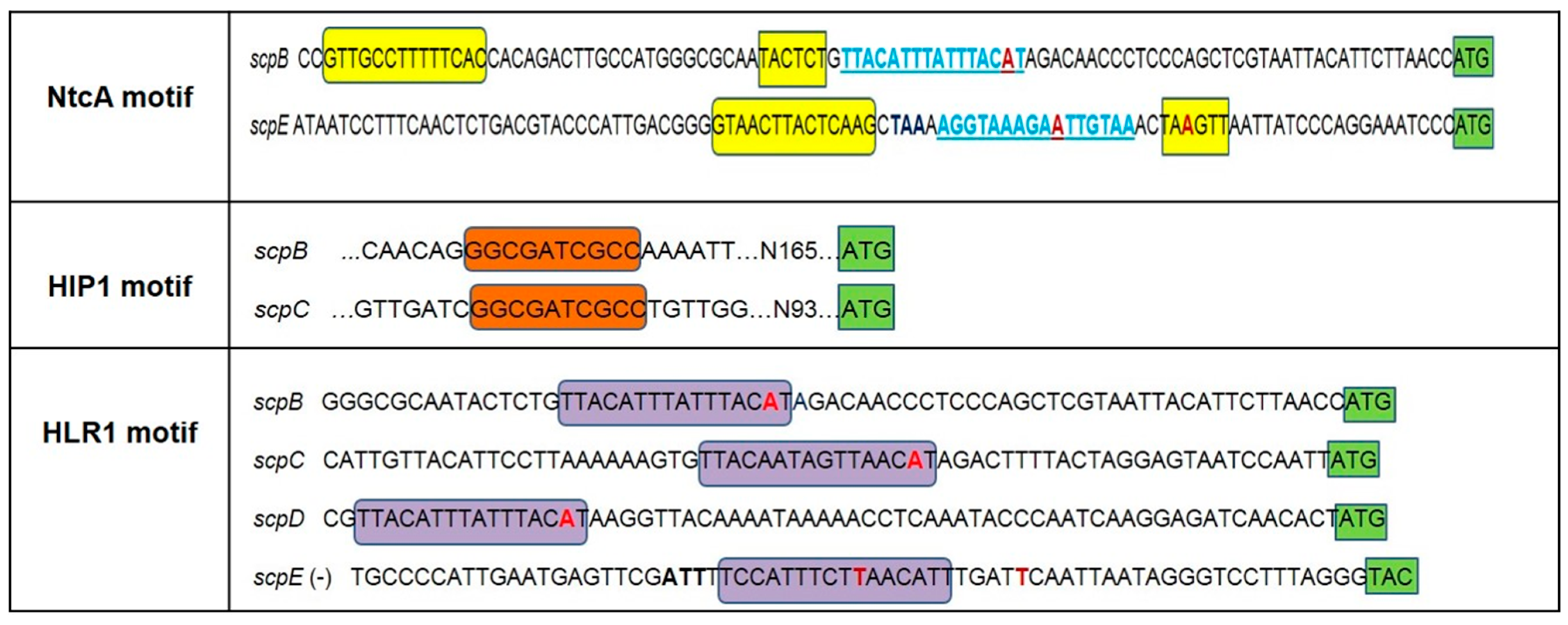 2.1. NtcA Binds to the Promoter Regions of scpB and scpE