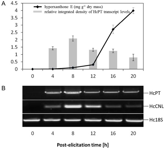 2.2. Elicitor-Induced Changes at the Metabolite and Transcript Levels in H. calycinum Cell Cultures