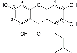 - Sample Availability: Samples of the compounds 1,3,6,7-tetrahydroxyxanthone and 1,3,6,7-tetrahydroxy-8-prenylxanthone are available from the authors.
