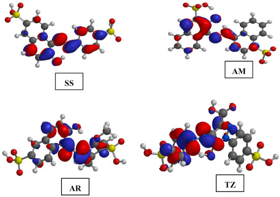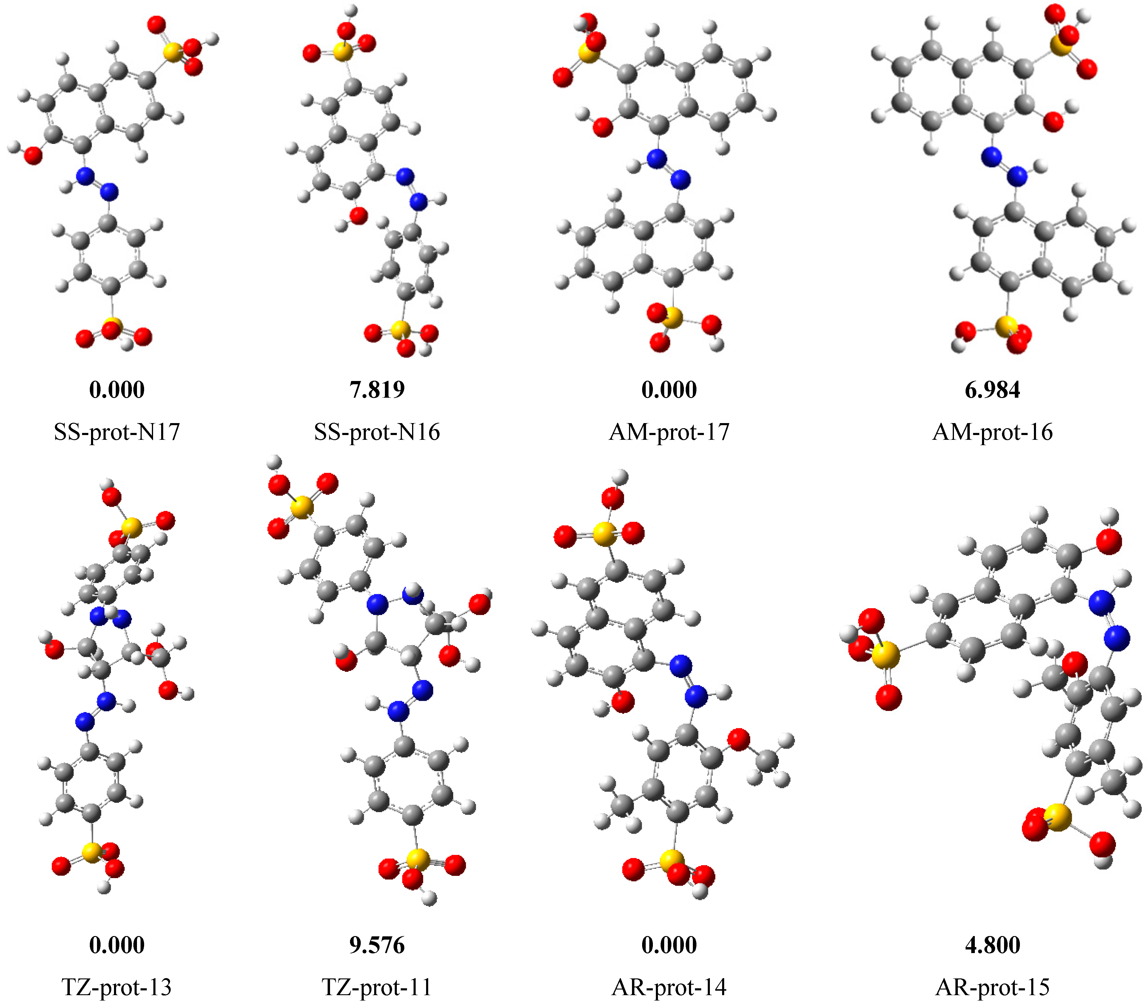 - Snehalatha, M.; Ravikumar, C.; Joe, I.H.; Sekar, N.; Jayakumar, V.S. Spectroscopic analysis and DFT calculations of a food additive carmoisine. Spectrochim. Acta A 2009, 72, 654–662. [Google Scholar] [CrossRef] [PubMed]
